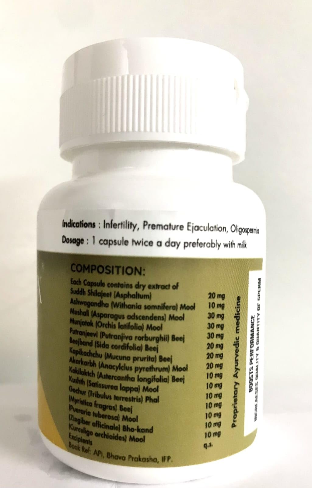 Proved by clinical trails . An Aphrodisiac Cum Spermatogenic capsule. Improves quality & quantity of sperms. Highly effective in Aphrodisiac disease & Premature ejaculation.